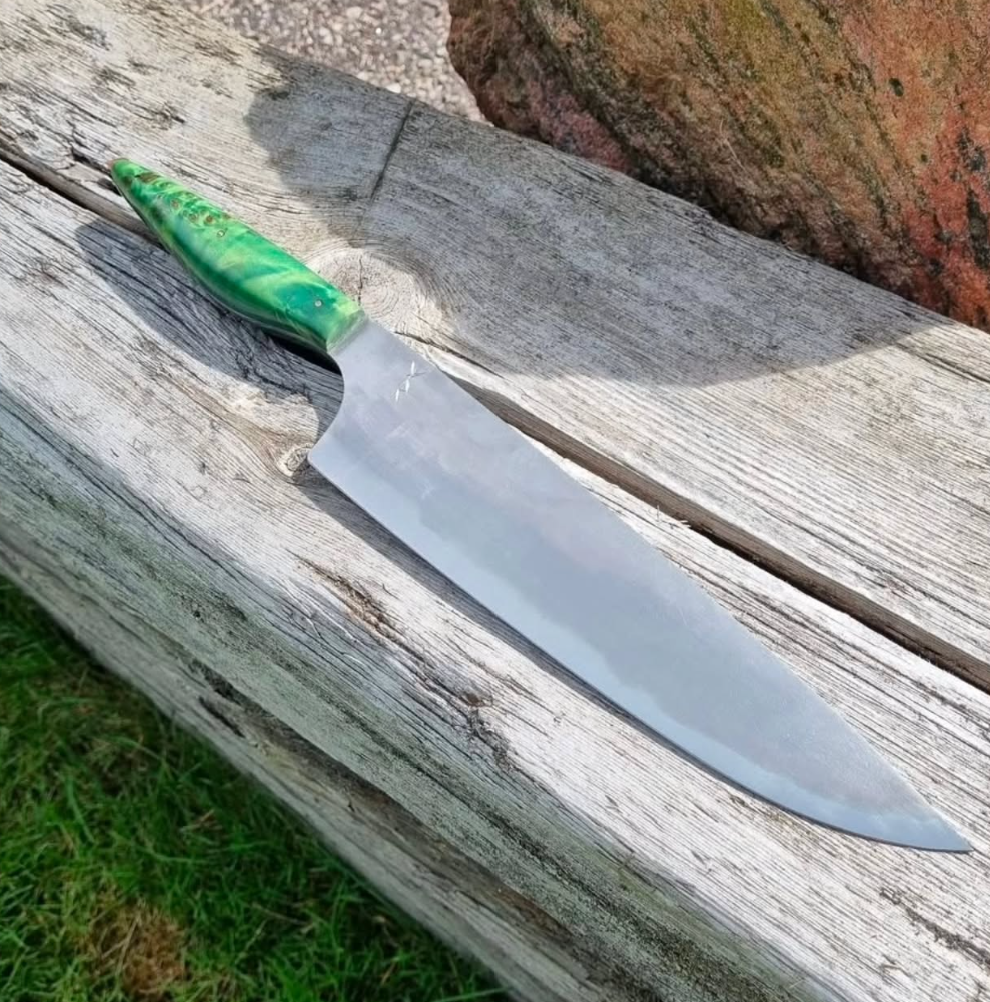 Kockkniv framtagen med ett tydligt fokus på funktion. Stålet är från Sandvik och skaftet i färgad poppel ger ett levande uttryck.